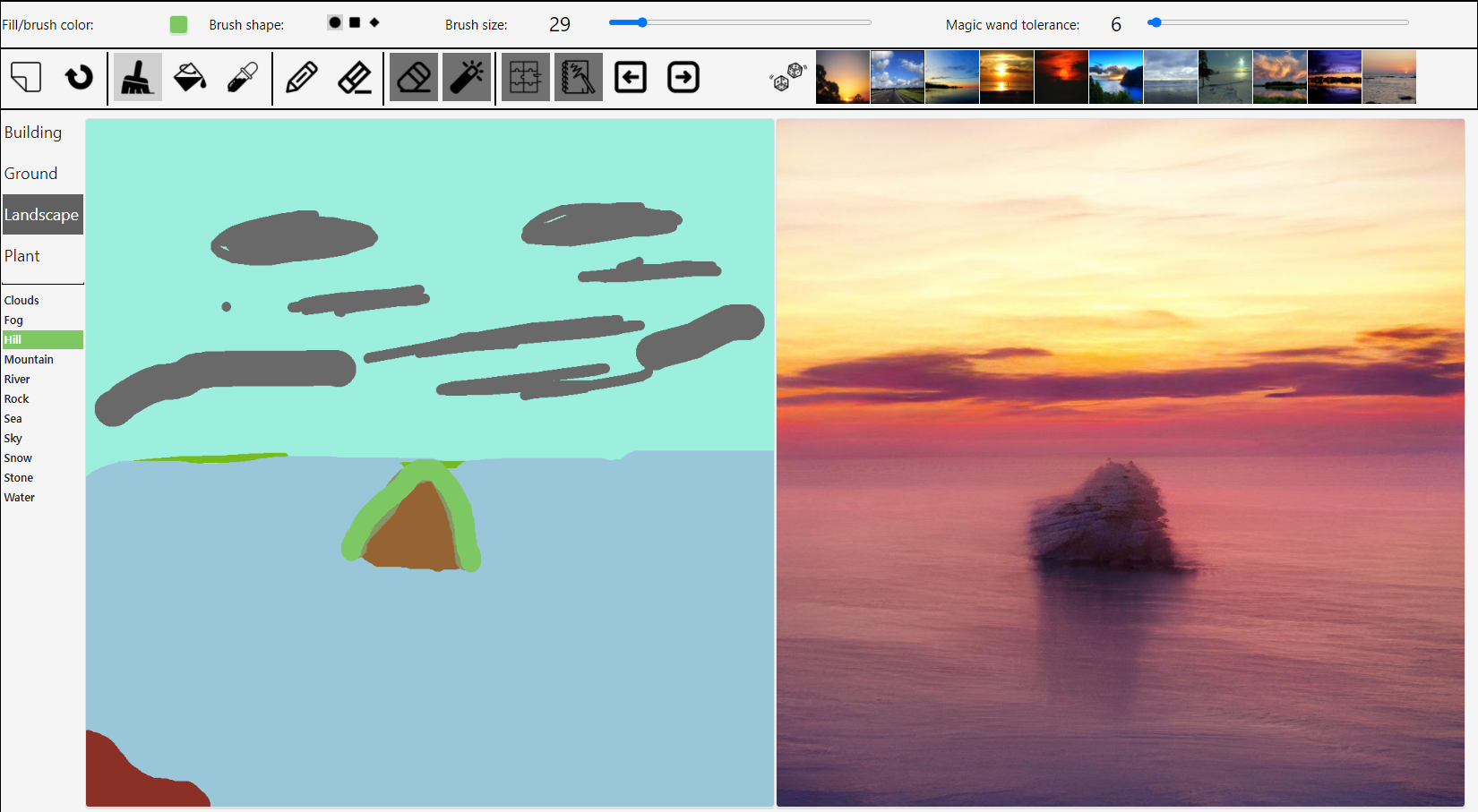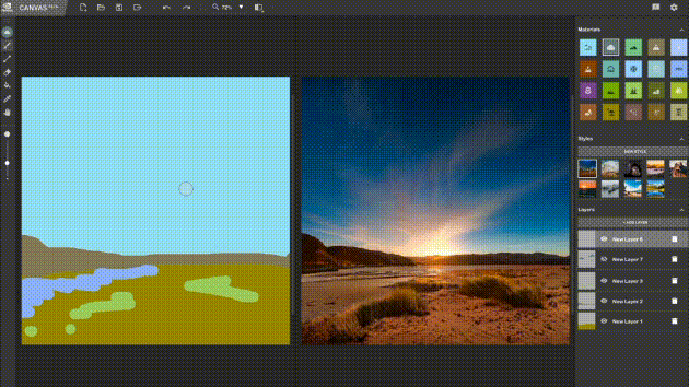 GauGAN을 발전시킨 Drawing 도구로 ’캔버스(CANVAS)’ 라는 공개했습니다.
