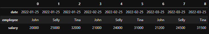 ], columns=['date', 'employee', 'salary'])