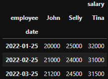 ], columns=['date', 'employee', 'salary'])